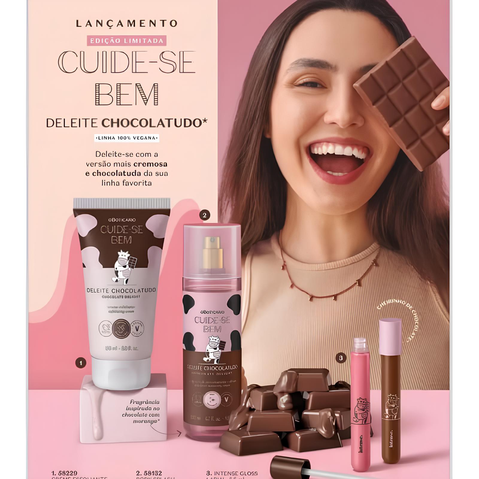 A O Boticário está lançando seu novo Kit DeLeite Chocolatudo (7 itens), com um desconto de 80% para todos que acertarem as perguntas do desafio.
